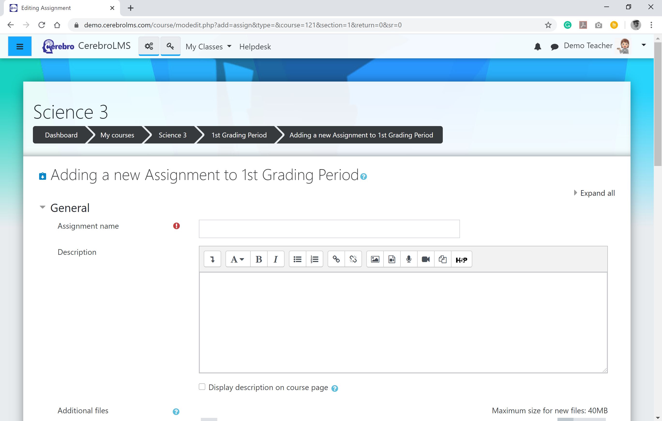 After clicking Add, a page where you can specify the details of the activity or resource will appear.